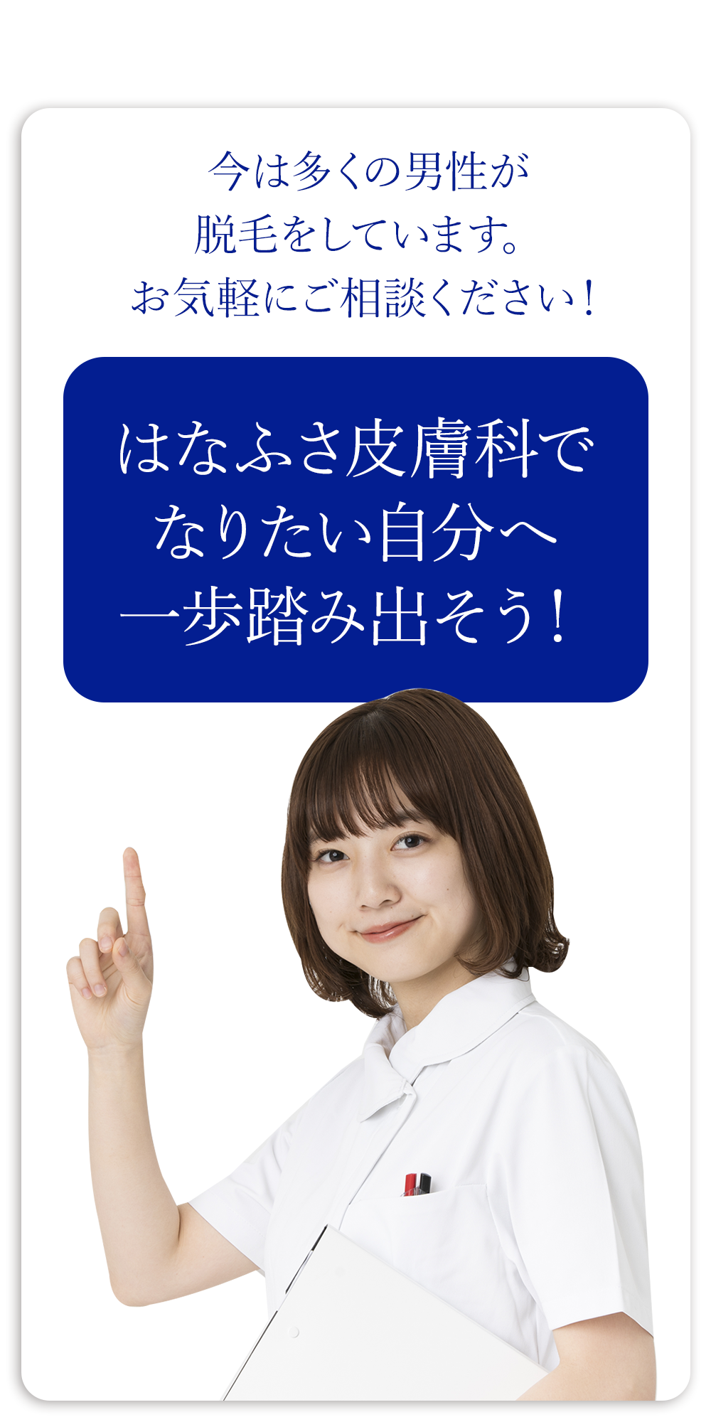 | ヒゲ脱毛 | 以前より人気の脱毛です。 毎日のヒゲ剃りの手間と費用が省け、ヒゲ剃りによる肌へのダメージもなくなります。 見た目も若々しくなります。ヒゲの形をデザインする、または量をコントロールするためにヒゲ脱毛を行う人も増えています。頬のあたりだけ脱毛、首だけ脱毛といったことも可能です。 |