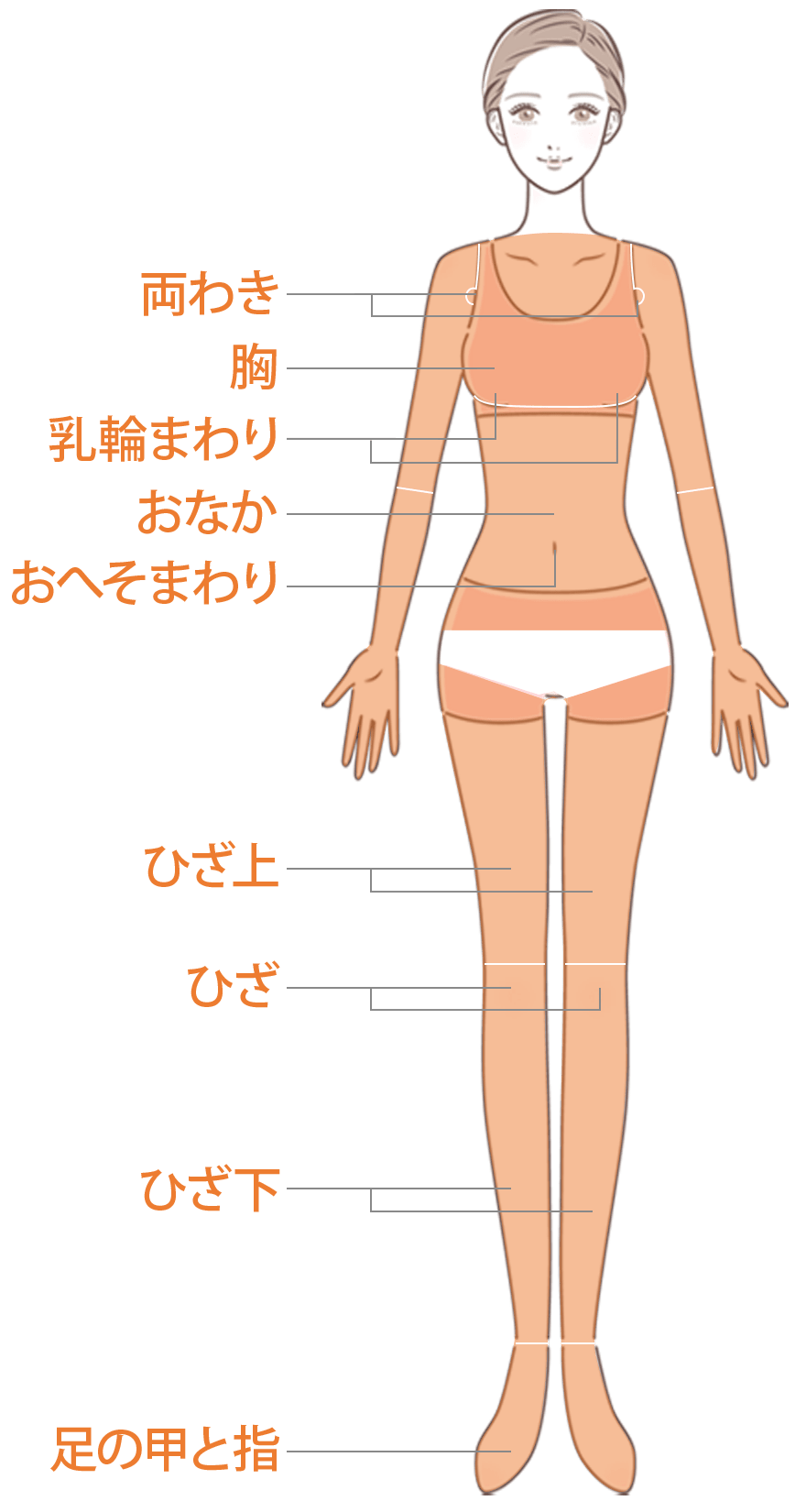 | 全身脱毛 | 近年、男性でも徐々に全身脱毛を選択する方が増えてきています。 短パンなどをよく履く方に特に人気があります。 |