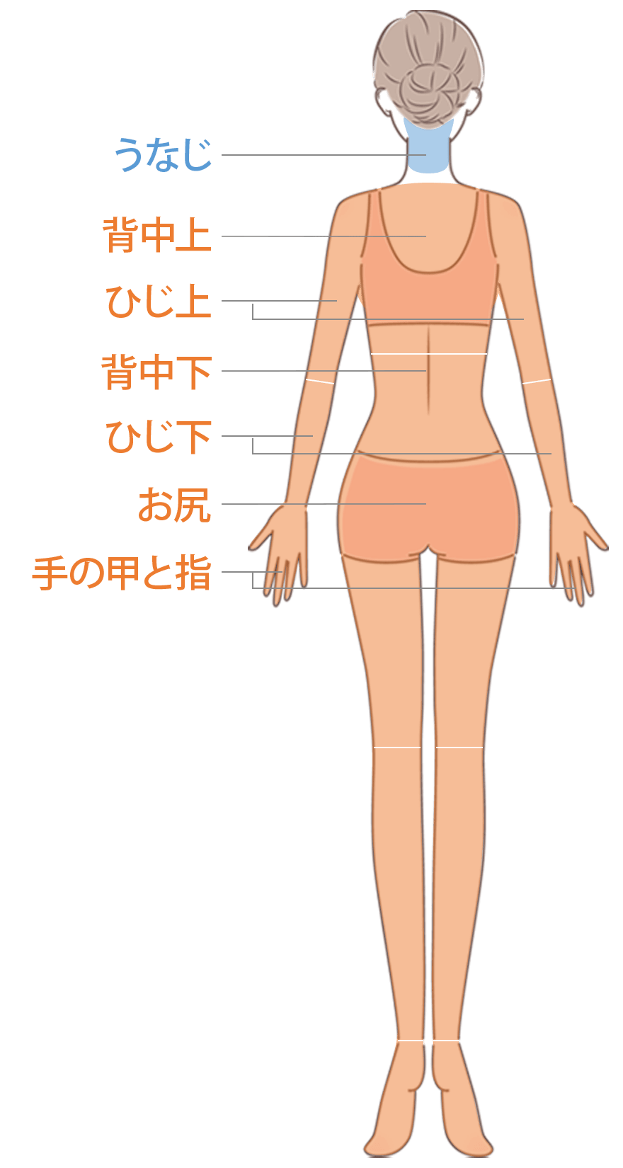 | Ⅵ | 濃い褐色の肌/黒い肌 | 決して赤くならず、 すぐに肌が強く濃くなる。 |